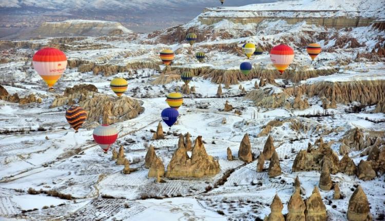 Sabah, erken saatlerde isteyen konuklarımızla, Balon Turu’na (ekstra) katılıyoruz. Otelimize dönerek alacağımız sabah kahvaltısının ardından, Kayseri’ ye hareket ediyoruz. Kayseri şehir merkezine 25 km mesafede, 3916 m yüksekliğindeki Erciyes Dağı'nda kurulu Erciyes Kayak Merkezine geçiyoruz. Burada vereceğimiz serbest zamanda, isteyenler kayak yaparken, dileyenler de, kar üzerinde doğa yürüyüşleri yapabilir ve eşsiz fotoğraf kareleri yakalayabilirler. Arzu eden konuklarımız ise Erciyes Kayak Merkez’inde bulunan otellerin cafe ve restaurantlarında kar manzarası eşliğinde kahvelerini keyifle içebilirler. Daha sonra, öğle yemeği için Kayseri’nin meşhur mantısından tadarak, Kayseri şehir merkezine doğru hareket ediyoruz.Kayseri Kalesi, Saat Kulesi’ ni görüyoruz ve Hunat Altun Küliyesi olan Selçuklu döneminde ''Huvand” ünvanı Selçuklu Saray ailesine özel bir ünvan olarak verilmektedir. Mahperi Hatun da bu ünvanı kullandığı için Cami Huvane'dan türkçeleşerek ''Hunat Cami'' olarak adlandırılmıştır, Tarihi değeri çok yüksek mihrabi ve minberi vardır. Kayseri’nin ünlü çarşısı Pastırmacılar Çarşısı’nda alışveriş için serbest zaman veriyoruz. Kapadokya’ya geri dönerken Kızılırmak kenarında yürüyüşler yapıyor ve keyifle akşam kahvelerimizi yudumluyoruz. Bugünkü turumuzu tamamlayıp otelimize dönüyoruz. Akşam yemeğimizi aldıktan sonra, isteyen konuklarımızla, (ekstra) Kapadokya’ya özgü mağaralara oyularak yapılan eğlence mekânlarında, müzikli unutamayacağınız bir Türk Gecesi’ ne katılıyoruz.